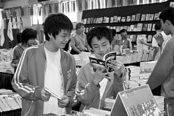 資料圖片:第二屆金門書展時,金城初中學生一下課就趕到展館看書。(圖片來源:東南線上)