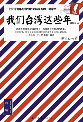 2009年初冬,一個臺灣青年寫給13億大陸同胞看的一封家書《我們臺灣這些年》風靡大陸,銷售火爆,作者透過自己的人生經歷,以年份為坐標,從1977年自己出生的那年開始,以輕松文筆向大陸讀者介紹自己所認識的臺灣社會和政治。已在而立之年的作者用淺顯的手法,講述30年來臺灣政治巨變下老百姓自己的故事。正如該書封面說言:讀完本書,你會了解臺灣人30年來的真實生活和心路歷程。只想感嘆一聲:大家都不容易!