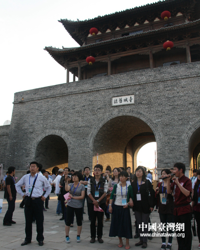 中國臺灣網5月17日棗莊消息 5月16日,科學發展新山東——“魯花杯”第八屆中國網絡媒體山東行西線采訪團來到棗莊市臺兒莊古城參觀、采訪。臺兒莊作為全國首個海峽兩岸交流基地,古城內隨處可見與臺灣息息相關的景致與展品。