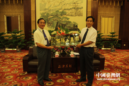 臺灣青年團向山西省委常委、秘書長高建民贈送臺灣瓷器(中國臺灣網 陳寧 攝)