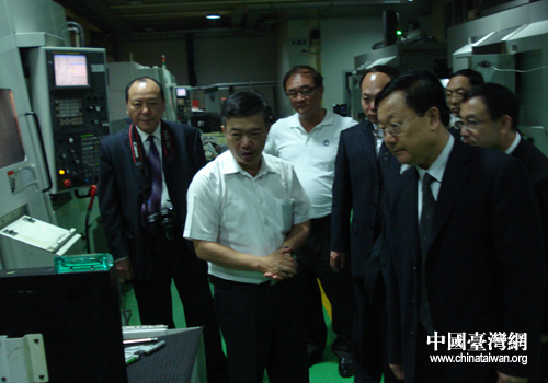 撫順市委副書記喻國偉一行在參觀臺(tái)灣精銳科技有限公司生產(chǎn)車間。(圖片來源:撫順市臺(tái)辦)