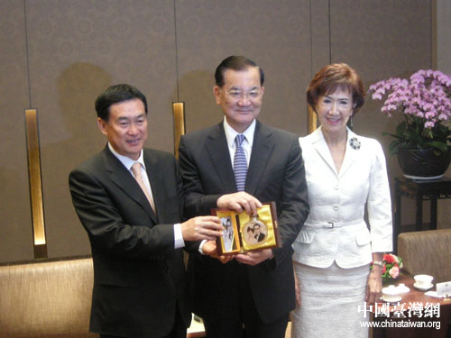 中國臺灣網(wǎng)5月25日臺北消息 國民黨榮譽主席連戰(zhàn)及夫人連方瑀24日晚會見了剛剛抵達臺北的河北省副省長楊崇勇一行。