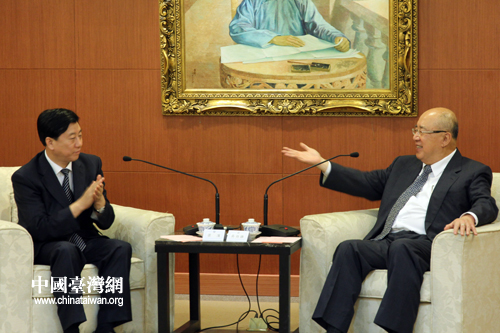 6月11日,中共河北省委常委、組織部部長梁濱拜會(huì)中國國民黨榮譽(yù)主席吳伯雄。(中國臺(tái)灣網(wǎng) 馬迪 攝)