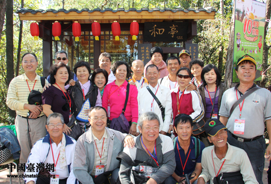 黃石寨內,臺灣嘉賓于江丙坤所題匾的和亭前留影。(中國臺灣網 王思羽 攝)