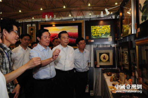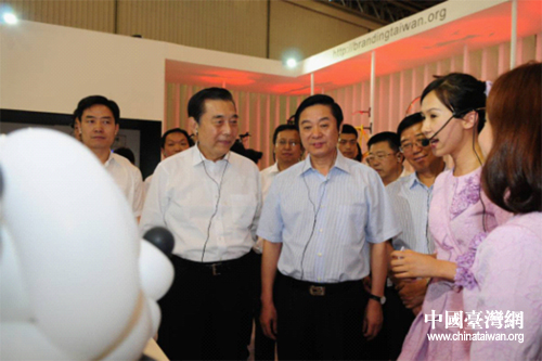 中共四川省委書記、省人大常委會主任劉奇葆一行參觀2012四川(成都)臺灣名品博覽會臺灣精品館。(圖片來源:四川省臺辦)
