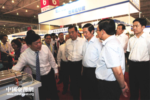 在講解員的引領下,劉奇葆一行仔細參觀“影音體驗”、“運動休閑”、“智慧保健”和“繽紛生活”四個主題展區。看到使用納米鈦材制造的自行車款式簡潔,造型美觀,劉奇葆伸手將自行車提起來,試了試重量,察看各個部件的結實情況。得知通過技術改造,新式的煤氣熱水器可節約20%的能源;看到利用新型塑料材料生產的襯衣、T恤柔軟、漂亮,劉奇葆說,這些充滿創意創新的產品展示了臺灣在設計和研發方面的實力和水平,臺灣企業瞄準市場需求和產業高端研發新產品的理念值得學習,這也為雙方加深合作開辟了更大的空間。