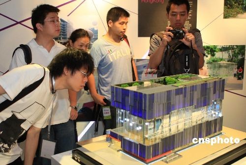 資料圖:世博會香港館模型吸引參觀者。 中新社發 湯彥俊 攝