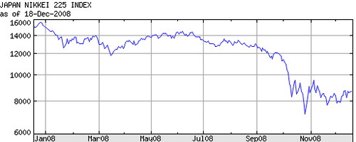 英國倫敦金融時報指數、法國CAC40指數、德國DAX指數等上半年走勢與美國道瓊斯指數基本一致,跌幅均在40%-50%之間。上半年還勉強掙扎的日本股市進入7月份后也出現了大幅下跌,實體經濟不景氣是導致日本股市下跌的主要原因。