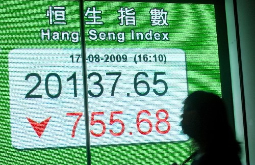 中國上海股指重挫逾5%,觸及兩個月來最低收盤點位,單日跌幅為九個月來最大;香港恒生指數(shù)收盤下跌755.68點至20137.65點,跌幅達3.62%;臺灣加權指數(shù)下跌1.95%至6931.80點,為五周來最大單日跌幅。
