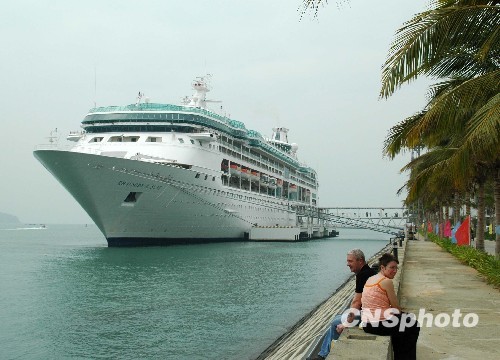 中國國務(wù)院一月四日發(fā)布《關(guān)于推進海南國際旅游島建設(shè)發(fā)展的若干意見》,將海南建設(shè)國際旅游島上升為國家戰(zhàn)略。意見提出,積極發(fā)展郵輪產(chǎn)業(yè),建設(shè)郵輪母港,允許境外郵輪公司在海南注冊設(shè)立經(jīng)營性機構(gòu),開展經(jīng)批準(zhǔn)的國際航線郵輪服務(wù)業(yè)務(wù),做好其停泊海南的服務(wù)工作。圖為2008年美國豪華郵輪“海洋迎風(fēng)號”?咳齺嗻P凰島郵輪碼頭的資料圖片。 中新社發(fā) 尹海明 攝