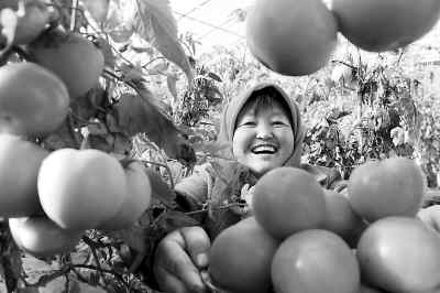 陜西省靖邊縣東坑鎮黃家峁村村民高俊梅正在自家的溫棚里采摘西紅柿。她家16個大棚里種植的反季節蔬菜每棚收入達2萬元。新華社記者 陶 明攝