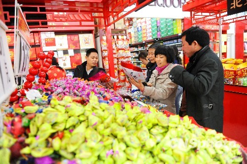 大型超市、百貨店讓利促銷活動多、力度大,客流和銷售大幅增加。河北開展“大篷車下鄉”,組成流動超市,為農村消費者提供便利。吉林舉辦“第三屆吉林年貨大集”,參展的中華老字號商品、土特產達上千個品牌、上萬個品種。甘肅各州市舉辦富有當地特色的年貨會,食品、服裝、首飾及煙酒銷量均翻番。天津舉辦第二屆“炫彩冬日、繽紛津城”購物季,相繼開展主題年貨市場、商品特賣、民俗表演等活動。青島以“滿意消費惠萬家”為主題,開展了“萬村千鄉趕年集”、“好客山東賀年筵”等100多項營銷活動。春節黃金周,陜西、四川銷售額同比分別增長23%和21.5%,天津、黑龍江、遼寧、山西、甘肅同比增幅均在20%左右。