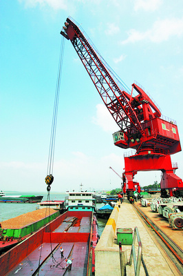 上半年全市外需實(shí)現(xiàn)恢復(fù)性增長。這是長沙新港大型裝卸設(shè)備正在調(diào)運(yùn)鋼材。