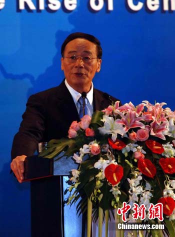 國務院副總理王岐山在主旨演講中表示,中部地區迎來了歷史性的發展機遇。劉占昆 攝