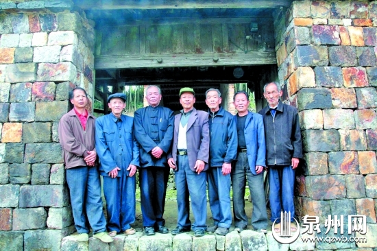 大坪鄉村民在張乃妙的祖厝前合影留念,追思先人。