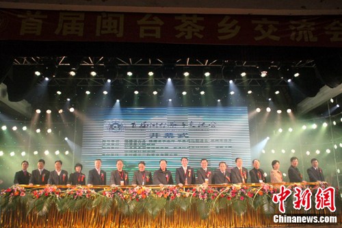全國政協常委、臺盟中央副主席黃志賢、臺灣新黨秘書長吳成典等海峽兩岸嘉賓共同推桿,啟動“首屆閩臺茶鄉交流會”。