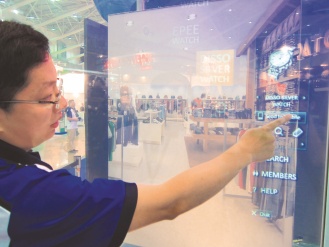 英特爾展示大型觸控廣告牌,讓現(xiàn)實生活更接近科幻片。圖片來源:《聯(lián)合報》