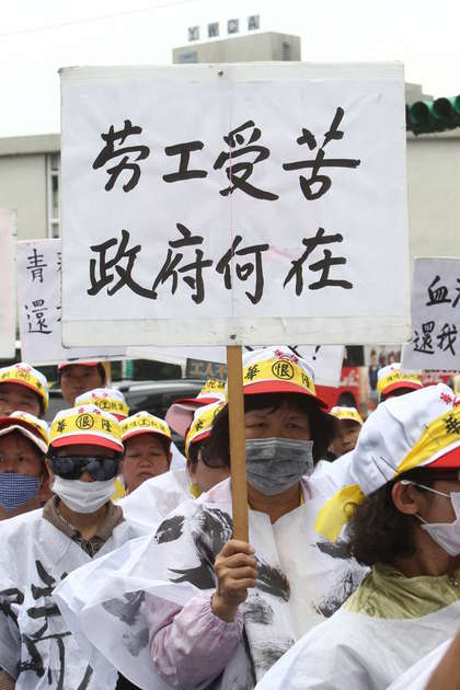 臺灣華隆紡織廠員工臺北抗議現(xiàn)場。圖片來自臺媒
