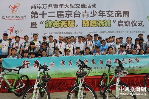 京臺(tái)兩地學(xué)生代表上臺(tái)發(fā)言,表達(dá)了兩岸學(xué)子對(duì)交流活動(dòng)的熱切期盼。隨著北京市臺(tái)辦副主任黃塞溪的一聲號(hào)令,來(lái)自京臺(tái)兩地的1000多名青少年歡呼起航。這場(chǎng)名為“行者無(wú)疆,綠色騎行”的主題活動(dòng),正式拉開(kāi)了2011年京臺(tái)青少年交流周暨兩岸萬(wàn)名青年大型交流活動(dòng)北京分團(tuán)活動(dòng)的序幕。
