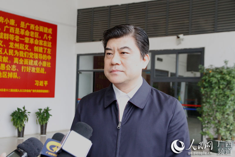 百色市委副書記、統(tǒng)戰(zhàn)部部長(zhǎng)楊春庭接受媒體團(tuán)采訪,解答百色市扶貧攻堅(jiān)相關(guān)問(wèn)題