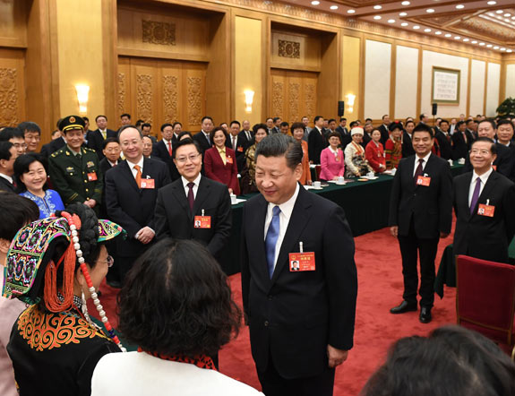 3月8日,中共中央總書記、國家主席、中央軍委主席習近平參加十二屆全國人大五次會議四川代表團的審議。新華社記者 李學仁攝
