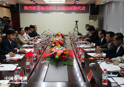 中國臺灣網(wǎng)5月24日三門峽消息 5月18日,臺灣郭氏宗親尋根謁祖暨文化商貿(mào)交流團(tuán)到河南三門峽市參訪,河南省臺聯(lián)會(huì)長郭晴接待、陪同。三門峽市委常委、統(tǒng)戰(zhàn)部長趙艷,副市長高戰(zhàn)榮等與交流團(tuán)一行舉行了座談會(huì)。
