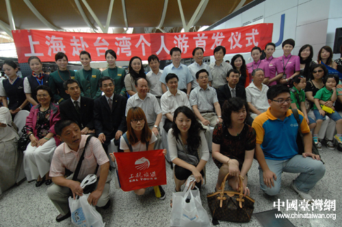中國臺灣網(wǎng)6月28日上海消息 今天上午,上海首批赴臺個人游的25名旅客在上海浦東國際機場乘坐東航FM801航班于9:35飛往臺北。這批上海國旅等5家旅行社受理的游客登機前舉行了啟程儀式,上海市旅游局、市臺辦、旅行社、東方航空、長榮航空的代表前往送行。