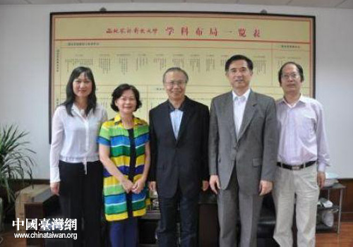 西北農林科大副校長侯曦與臺灣中國醫藥大學副校長吳永昌及其夫人一行合影留念(圖片來源:陜西省臺辦)