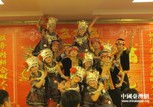 旺旺貴陽分公司員工表演的舞蹈《苗族敬酒歌》。(貴陽市臺辦 段小芬 攝)