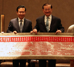 吳伯雄表示,安陽欣欣向榮、生機勃勃,歷史文化底蘊非常深厚,這次來安陽讓我們受益很多,也感到非常榮幸。兩岸同屬中華民族,同文同祖。兩岸之間有兩座橋梁,一座是手攜手的經濟合作,一座是心連心的文化交流,兩座橋梁都很重要。經濟的合作雙贏是兩岸手攜手的工作,而文化的交流則是心連心的工作。近年來,安陽與臺灣交流日益密切,希望兩岸建立更加緊密關系的時候,安陽扮演起更加重要的角色。吳伯雄感謝安陽當地對臺資企業所給予的幫助,希望安陽各項事業百尺竿頭,更進一步,祝愿全市人民幸福安康。