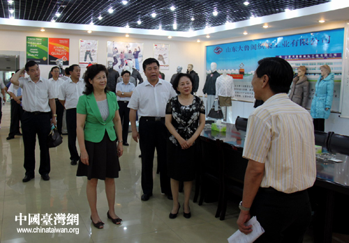 中國臺灣網7月2日濟南消息 日前,山東省臺辦主任張雪燕到濟南市濟陽縣調研對臺工作和臺資企業發展情況,先后察看了濟南大自然化學公司、統一集團、旺旺集團、大魯閣織染工業公司、界龍科技公司,并深入企業生產車間、研發中心、物流配送中心,實地調研企業生產和技術研發等情況。