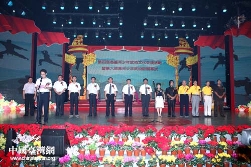 中國臺灣網7月31日壽光消息  日前,第四屆魯臺青少年武術文化交流活動在山東省壽光市廣電大劇院盛大開幕。來自臺灣中華武術總會、臺北市國術會、中華北少林長拳推展協會、中華國際南少林五祖拳協會、臺灣“中國文化大學”、臺北市士林區國術委員會、中華少林長拳門的武術代表隊和來自濟南、南京、昌樂、壽光的武術代表隊共計500余名青少年武術愛好者參加開幕式。