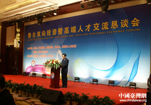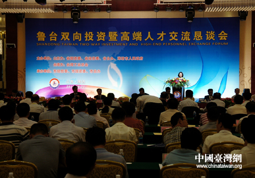 中國臺灣網9月14日濰坊消息  日前,魯臺雙向投資暨高端人才交流懇談會在濰坊魯臺會展中心舉行。懇談會由山東省政府國有資產監督管理委員會、山東省經濟和信息化委員會、山東省政府臺辦、濰坊市政府和臺灣工業總會聯合主辦。魯臺兩地相關部門、團體以及臺灣工業總會考察團、山東省15戶省管國有企業負責人,濰坊市有關部門單位、重點企業的負責人參加會議。