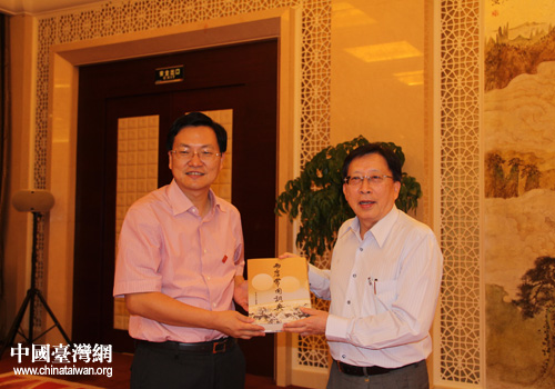 劉兆玄與山東省棗莊市互贈禮品(圖)
