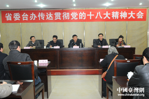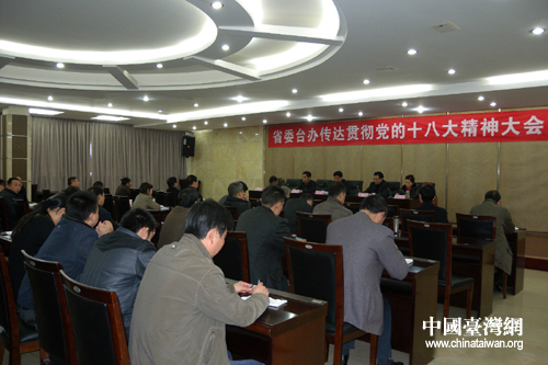 四川省臺辦召開傳達貫徹黨的十八精神大會。(圖片來源:四川省臺辦)