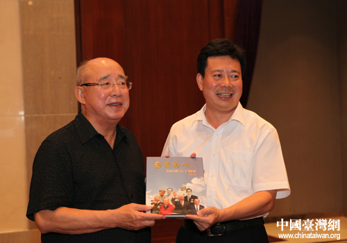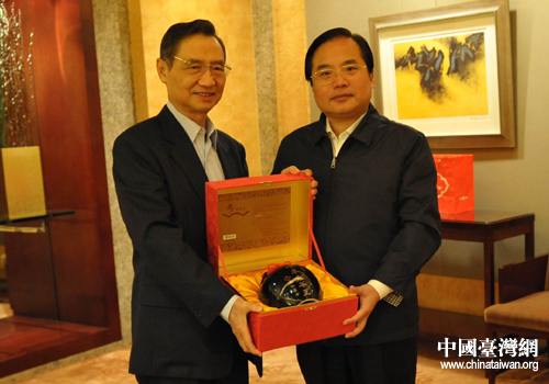 雙發(fā)互贈(zèng)禮物。(圖片來(lái)源:青島市臺(tái)辦)