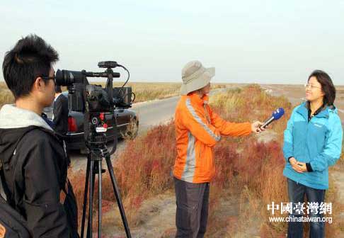 臺(tái)灣中天電視臺(tái)拍攝《黃河入海流》電視專(zhuān)題片。(圖片來(lái)源:東營(yíng)市臺(tái)辦)