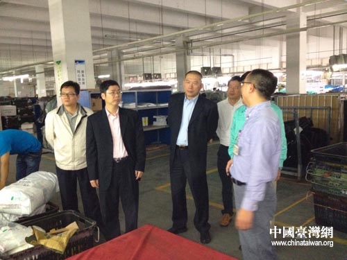中國臺灣網4月10日中山消息 日前,廣東省臺辦副主任陳林佐出席中山市政府舉辦的“3.28”經貿招商活動開幕式后,來到東升鎮臺資企業隆成日用制品有限公司、易惠日用制品有限公司走訪調研。中山市臺務局局長林慶和陪同。