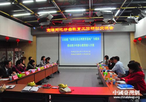 中國臺灣網(wǎng)4月23日北京消息 日前,天津市臺辦宣傳處處長王金鎖、南開區(qū)臺辦主任田路明帶領(lǐng)南開區(qū)臺辦、教委工作人員及天津市三所學(xué)校的領(lǐng)導(dǎo)一行7人到西城區(qū)調(diào)研青少年涉臺教育工作。北京市臺辦宣傳處處長金秀清、西城區(qū)臺辦主任劉琪、副主任趙玲、教工委統(tǒng)戰(zhàn)部部長李惠林、區(qū)涉臺教育基地——少年宮書記孟三豐、主任王小惠等同志參加接待活動。