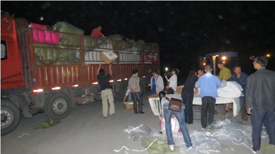4月21日凌晨,臺(tái)資企業(yè)寬庭家居制品有限公司員工連夜裝載救災(zāi)品出發(fā)前往災(zāi)區(qū)。