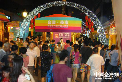 “油炸冰淇淋”、“烤生蠔”、“起士馬鈴薯”、“士林大熱狗”、“阿里山烤肉串”、“深坑臭豆腐”、“大腸包小腸”等臺灣特色小吃倍受市民熱捧,攤檔前面大排長龍,人流不息,氣氛火熱,“吃客們”不顧天氣炎熱,雖然各個(gè)汗流夾背,仍有滋有味地大吃地道臺灣風(fēng)味小吃。