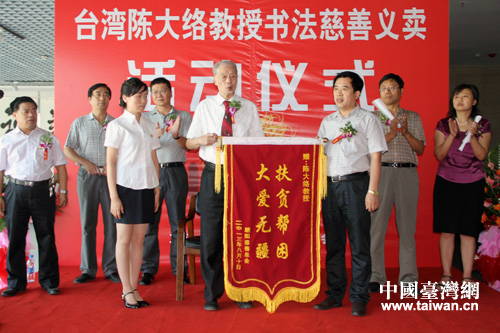 中國臺灣網8月23日朝陽消息 8月20日,來自臺灣著名學者、書法家陳大絡教授與朝陽市慈善總會聯手在朝陽市博物館舉行書法義賣活動。