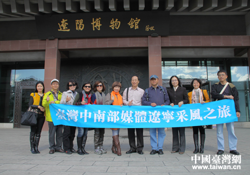 中國臺灣網10月14日沈陽消息 秋高氣爽,風清云淡。10月11日,以臺灣高雄市新聞記者公會、高雄市記者協會理事長劉大釧為團長、港都廣播電臺翁碧蓮為副團長的臺灣中南部媒體記者團一行12人到遼陽采風。