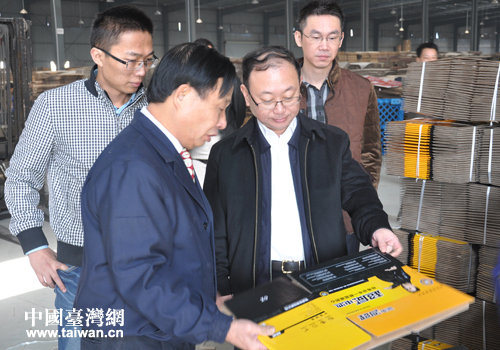 歐陽泉華一行在上高成志包裝材料調研。(圖片來源:江西省臺辦)