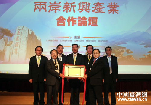 10月30日,夏耕副省長(zhǎng)等在臺(tái)中出席兩岸新興產(chǎn)業(yè)合作論壇。(圖片來(lái)源:山東省臺(tái)辦)