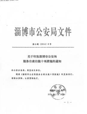 五、淄博市公安局出臺十項服務臺胞臺商措施
