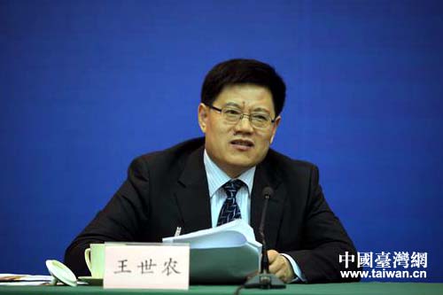 山東省政府新聞辦公室主任、山東省政府新聞發(fā)言人王世農主持發(fā)布會。(圖片來源:山東省臺辦)
