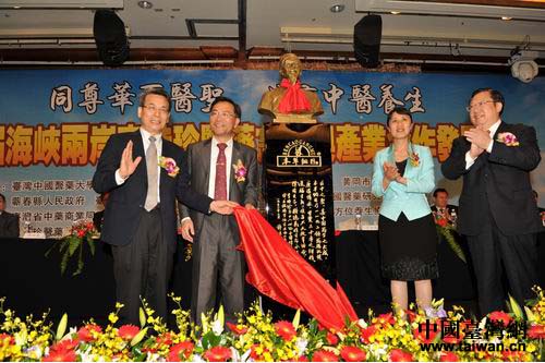 黃岡市政府向臺灣中國醫藥大學贈送了李時珍銅像,王曉東、蔡炳坤等共同為銅像揭幕。論壇期間,李時珍醫藥集團與臺灣中國醫藥大學、湖北中醫藥大學與臺灣中國醫藥大學、武漢九州通藥業與臺灣相關機構簽署了合作協議。(中國臺灣網湖北省臺辦通訊員 伍洋)
