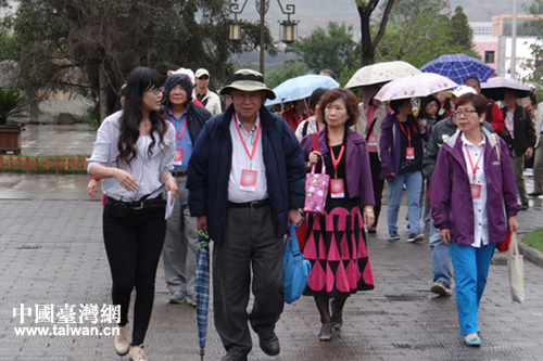在西寧市第二十一中學(xué)教師引導(dǎo)下參觀學(xué)校。(圖片來源:青海省臺辦)