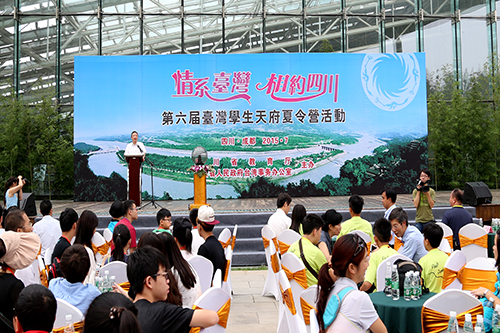 2015第六屆臺(tái)灣學(xué)生天府夏令營(yíng)開營(yíng)儀式現(xiàn)場(chǎng)。(圖片來(lái)源:四川省臺(tái)辦)